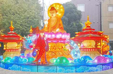 横浜中華街でのイベントは自粛となりましたが、中華街の中の公園では華々しいライトアップが行われ、龍や神様の光るオブジェが並んでおります。