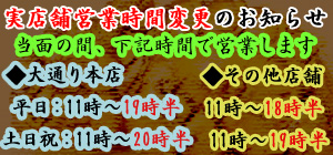 - 営業時間変更のお知らせ