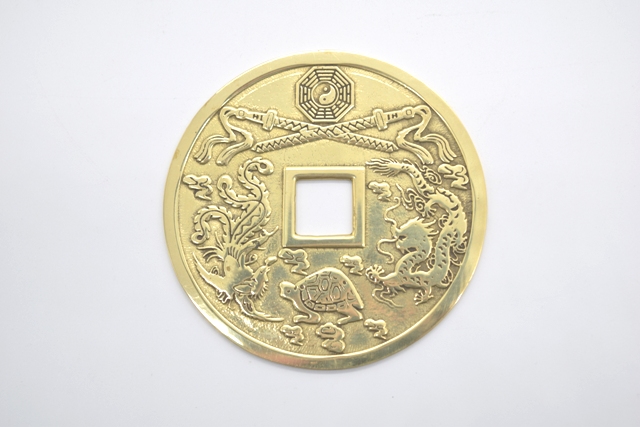 ↑四神が刻まれた大きめの銅製古銭
