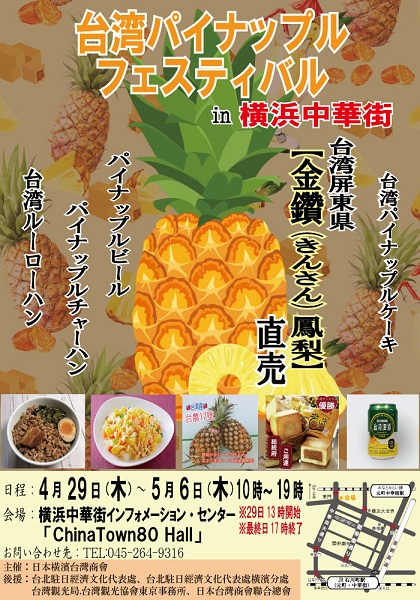 本日より「横浜中華街インフォメーション・センター チャイナタウン80ホール」にて、日本横浜台灣商會主催「台湾パイナップルフェスティバル」が開催されます。