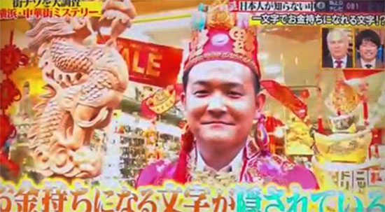 高額な黄金の龍のネックレスをはじめとした開運グッズを出演者の方に身につけて頂き、福飾に描かれた文字の意味などが解説で流れました。