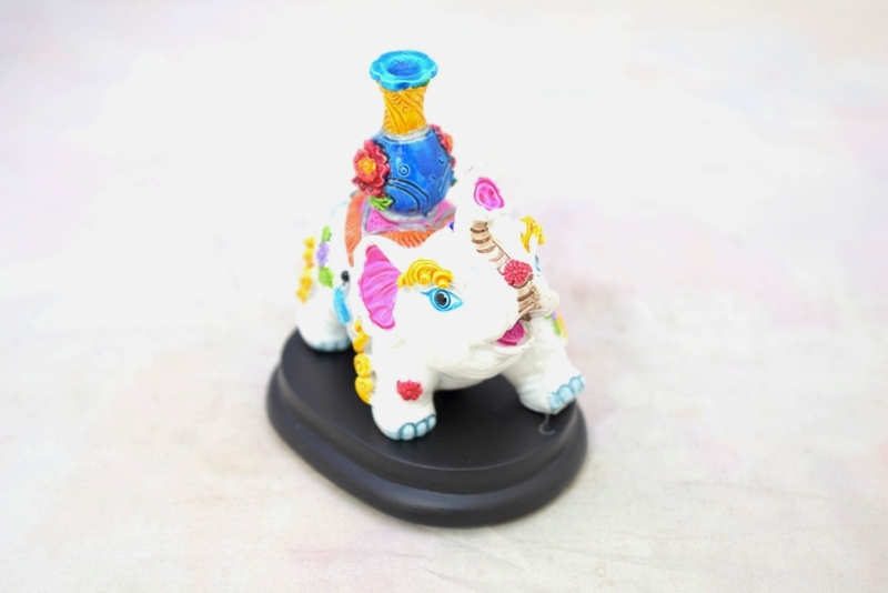 目にも鮮やかなカラフルなゾウの樹脂製置物