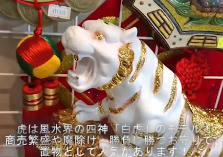 台座付き樹脂製置物を中心に、銅製置物や貯金箱からぬいぐるみストラップまで様々な寅の風水グッズが登場!