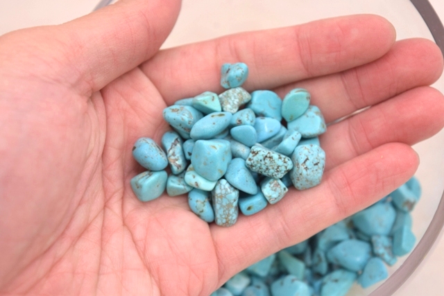ハウライトトルコは天然石のターコイズとは似て非なる染色された石ですが、