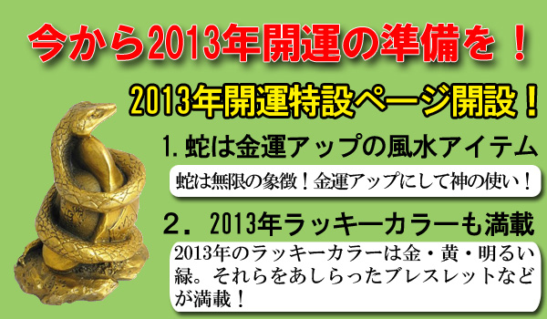 すでに、2013年のラッキーカラーも発表され、2013年に向けて、開運の準備ができています。今からでも運気の波に乗りましょう!
