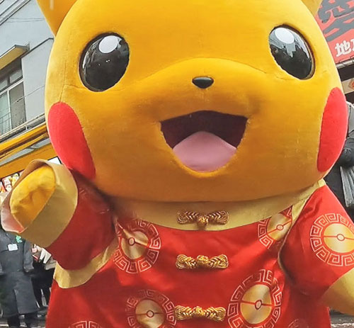 ピカチュウの着ぐるみはもはや横浜の夏の風物詩と言っても過言ではないほどなじみ深くなっておりますが、このチャイナ服仕様とレックウザの参戦はなかなか「レア」ではないでしょうか?