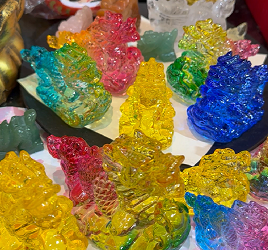 辰商品以外にも玉の龍亀や三脚蟾蜍の樹脂製置物、カラー貔貅などお馴染みの風水置物も追加しております。