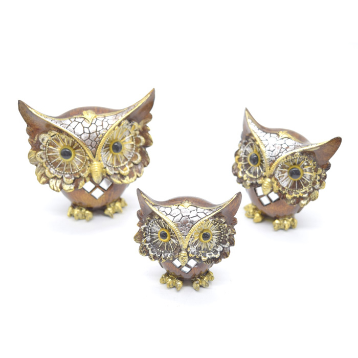エキゾチックな雰囲気が漂う、木彫り風の樹脂製フクロウセット!
