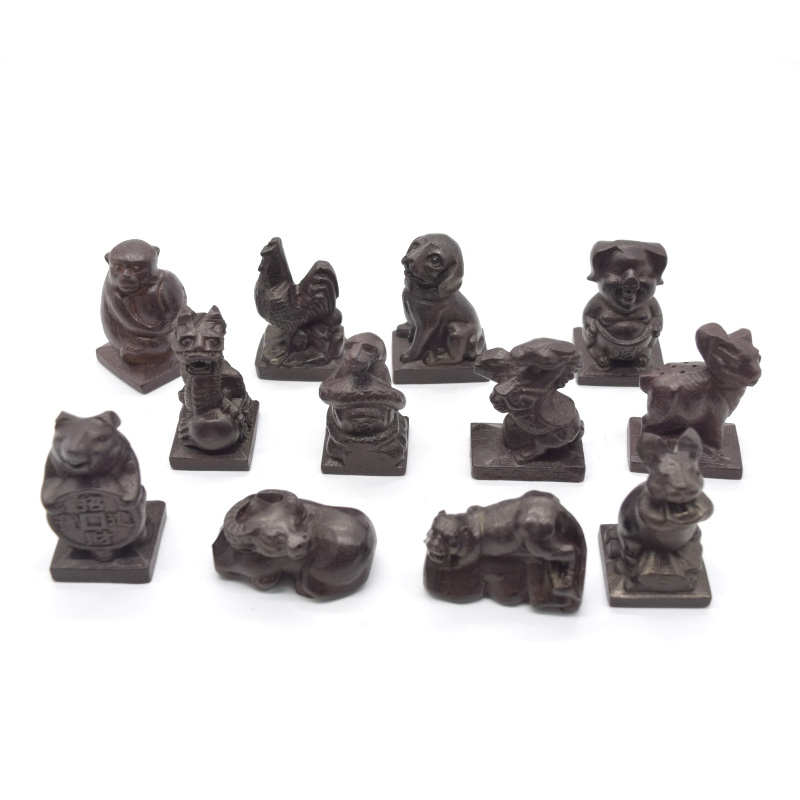 黒寄りのこげ茶色が落ち着いた雰囲気を醸し出す、木彫りの十二支置物が通販サイトに新登場しております。