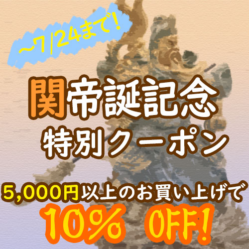 来週7/22(金)(※旧暦の6/24にあたります)にいよいよ行われる関帝誕を記念して、通販サイト限定の特別クーポンを配布します。